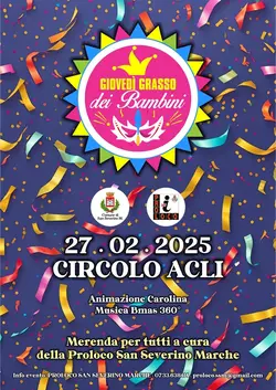 Festa di carnevale per bambini con divertimento e merendaSan Severino MarchePiazza del Popolo, 43, 62027 San Severino Marche MC, Italia